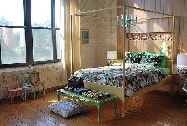 卧房的天花板,应简单为宜。千万别学商业空间,弄得非常艺术、奇特、花样百出,甚至装上镜子,这会使人不易入睡,久而久之健康会出问题。床位上方不可挂奇形怪状的灯具,会使人产生紧张不安的感觉。在地震频发的当今,床的正上方最好是完全没有任何灯具,卧室照明尽量使用床头桌灯或立灯及靠近墙边的隐藏灯管。